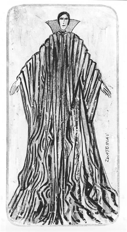 Tvrdohlavá žena... - 17.10.1974, Otakar Schindler - návrh kostýmu (Zlatohlav) (čb reprodukce)