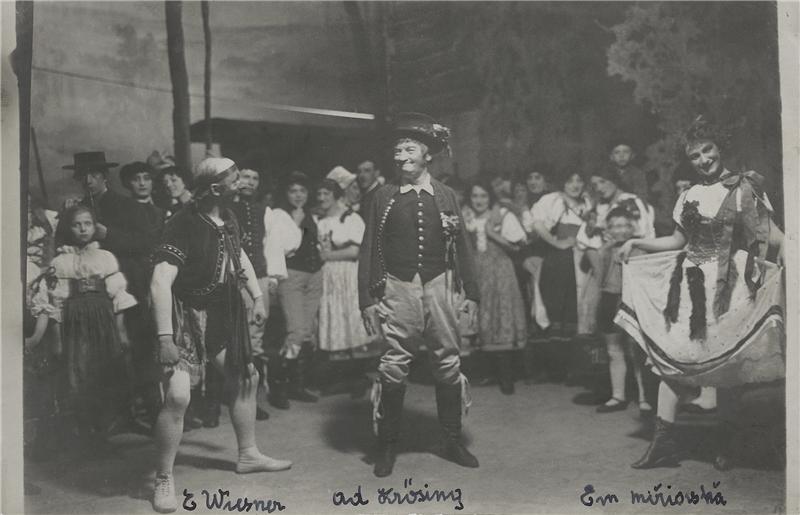 Prodaná nevěsta - 12.05.1909, E. Wiesner (Komediant), A. Krössing (Vašek), E. Miřiovská (Esmeralda)