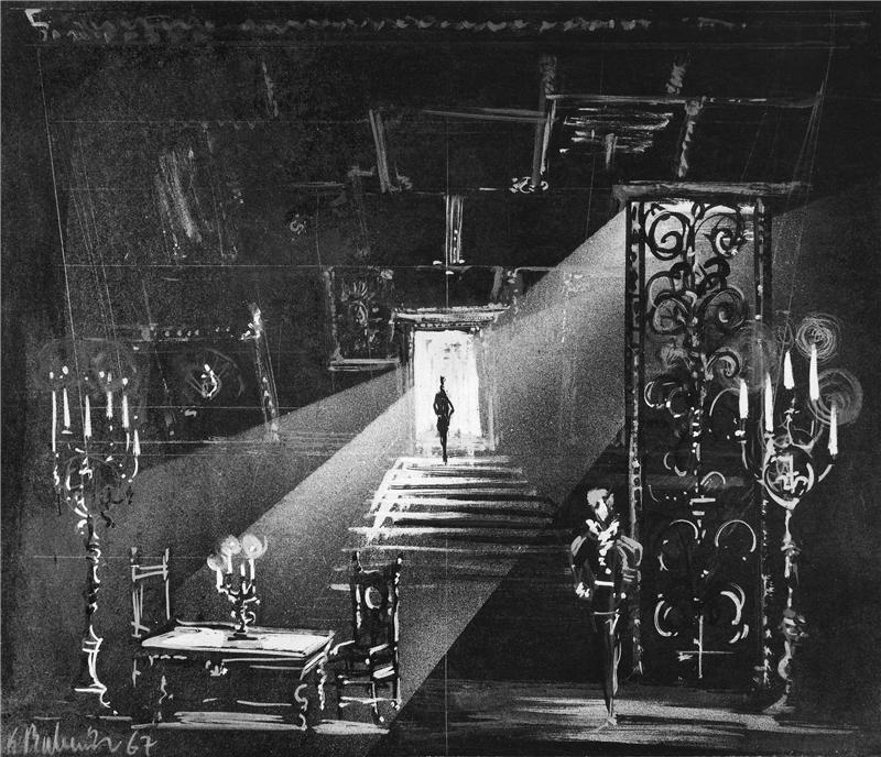 Maškarní ples - 12.01.1968, Květoslav Bubeník - návrh scény (čb reprodukce)