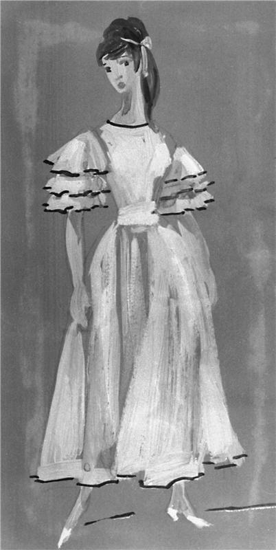 Měsíc na vsi - 12.05.1965, Jindřiška Hirschová - návrh kostýmu (Věra); čb reprodukce