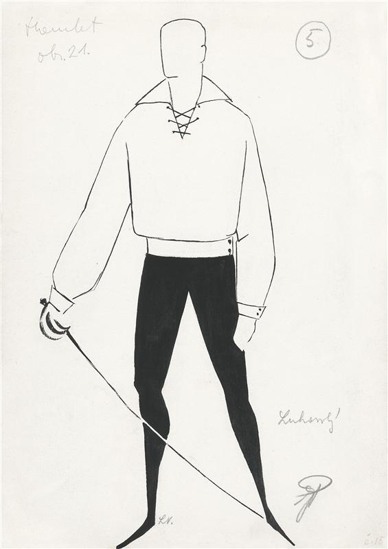 Hamlet - 27.11.1959, Jindřiška Hirschová a Ludmila Vojířová (návrh kostýmu Hamleta, obr. 21)