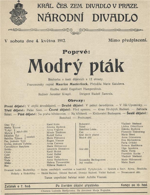 Modrý pták - 04.05.1912, divadelní cedule