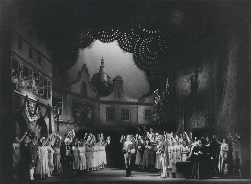 Jakobín - 04.07.1946, sborová scéna: K. Hruška, M. Linka, E. Haken, Š. Jelínková, V. Bednář