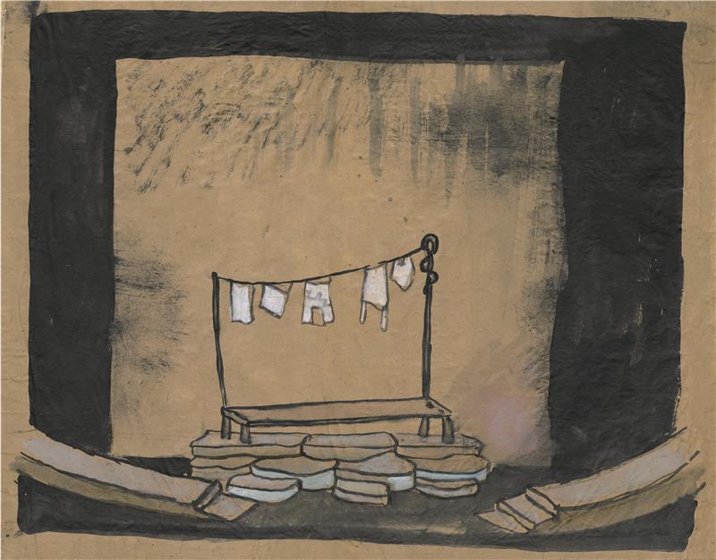 Sen noci svatojanské - 13.06.1933, Vlastislav Hofman - návrh scény (světnice v chalupě Kdouličkově)