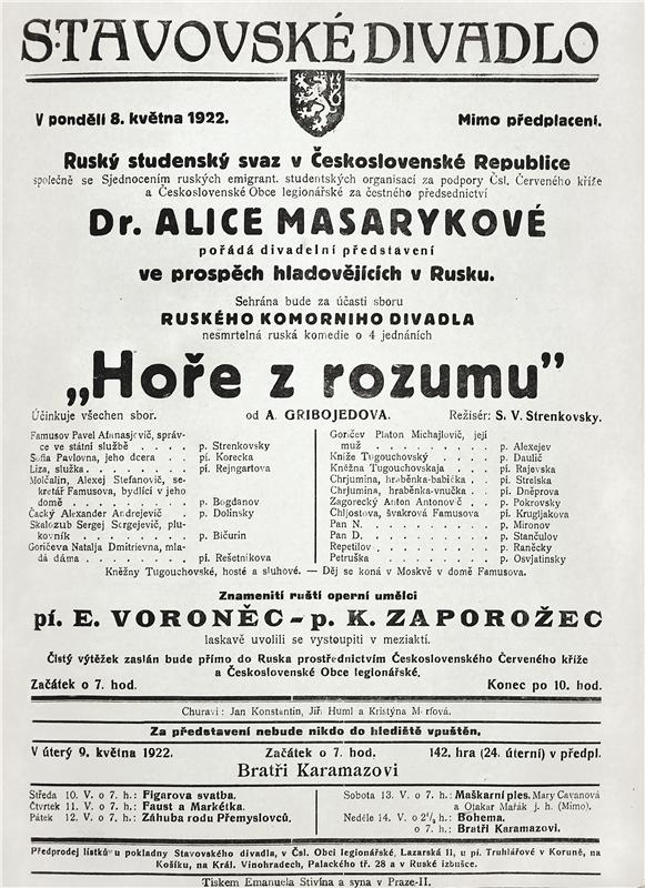 Hoře z rozumu (Ruské komorní divadlo) - 08.05.1922, divadelní cedule