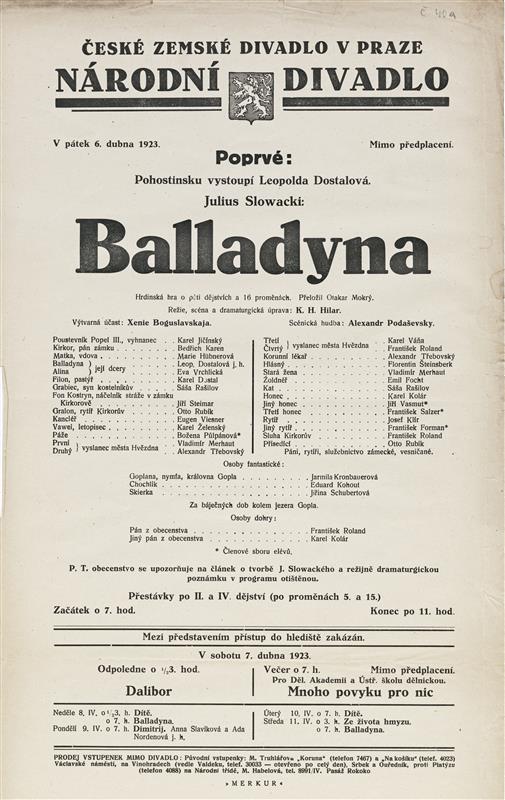 Balladyna - 06.04.1923, divadelní cedule z premiéry