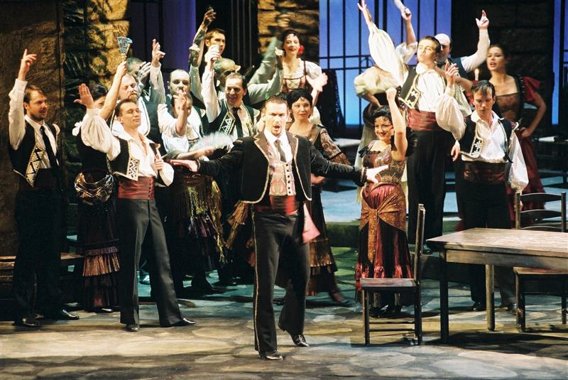 Carmen 11.03.2004 Martin Bárta (Escamillo), Pavla Vykopalová (Mercedes), Dagmar Vaňkátová(Frasquita)