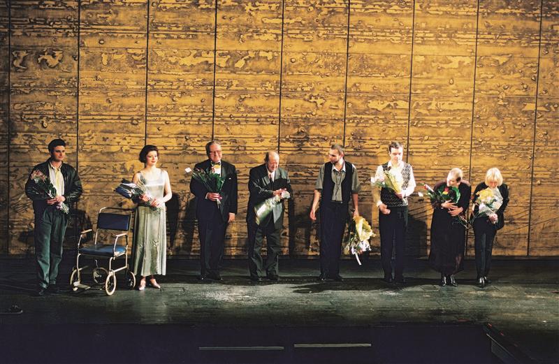 Nenávistná láska 17.03.2002 Otmar Mácha (čtvrtý zleva) s Josefem Chaloupkou a účinkujícími pěvci