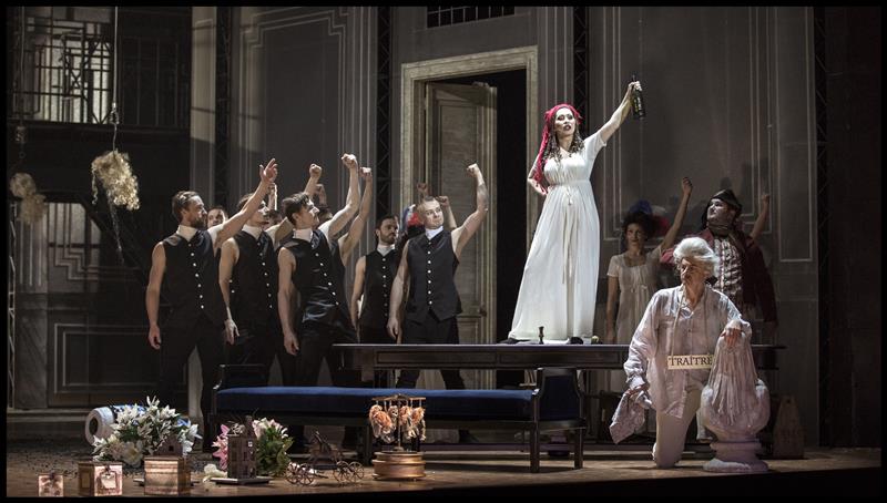 Andrea Chénier - 05.05.2016, Kateřina Jalovcová (Bersi), klečící Aleš Hendrych (Fléville)