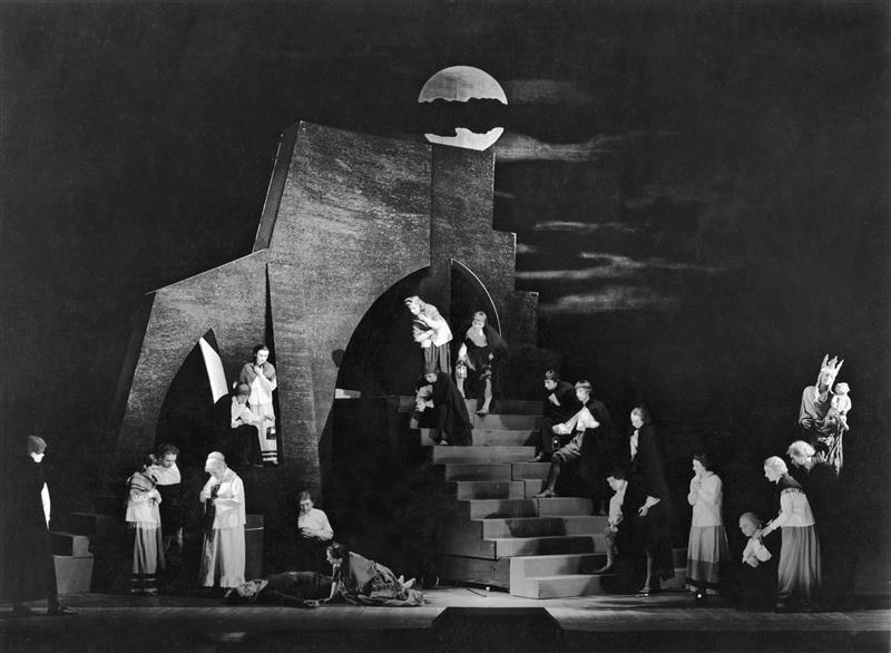 Faust - 02.12.1939, celková scéna; vlevo: Otto Rubík (Valentin), Marie Glaserová (Markéta)