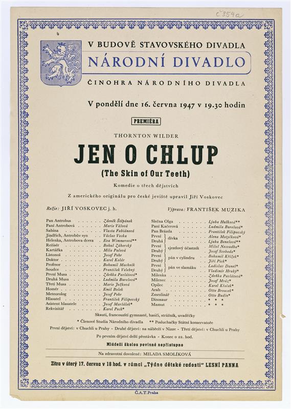 Jen o chlup - 14.06.1947, divadelní cedule