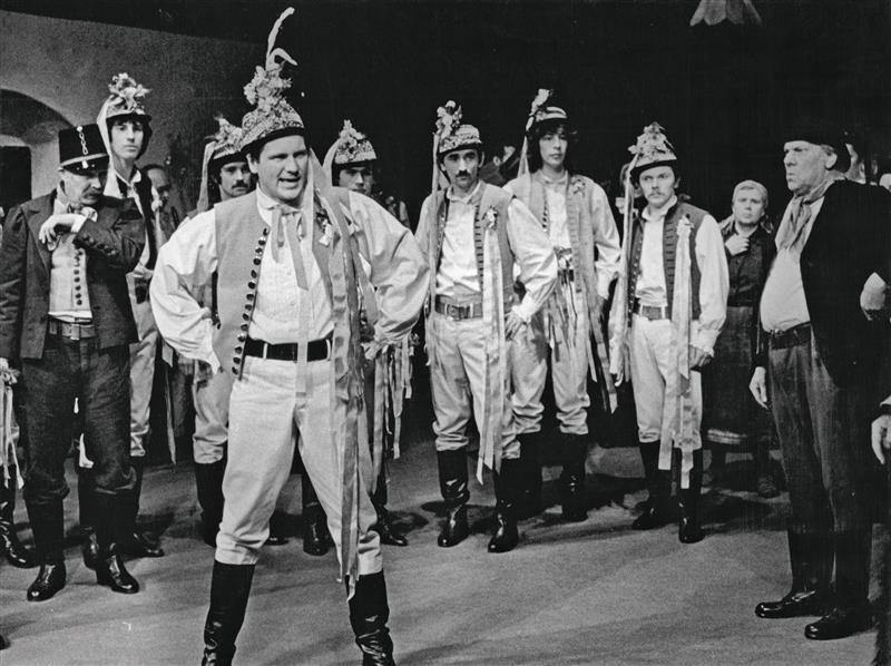 Maryša - 03.04.1980, Jaroslav Mareš (Hrdlička, zcela vlevo), Jiří Štěpnička (Francek, v popředí)