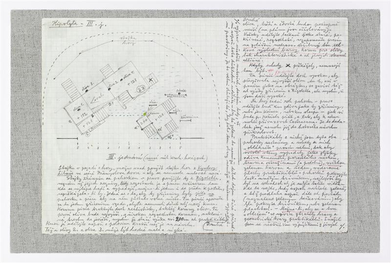 Hipolyta - 18.12.1943, Jan Zrzavý - technický nákres scény s popisem (III. jednání)