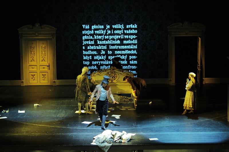 Dopisy... - 04.04.2019, celková scéna, Ivo Hrachovec (Kritik), Alžběta Poláčková (Mozart)