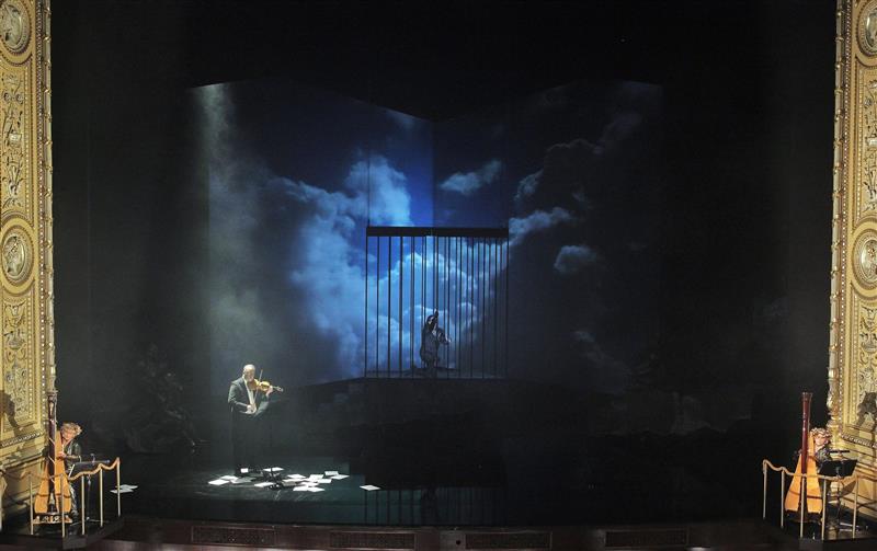 Dalibor - 27.06.2019, 3. jednání; harfy: I. Pokorná (vlevo) a B. Váchalová (vpravo),housle: A. Rosík