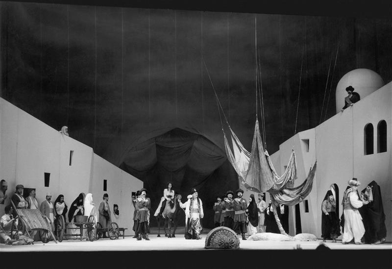 Únos ze serailu 02.05.1992 Scéna, uprostřed H. Zachatová (Konstanze) a J. Horáček (Der Bassa Selim)