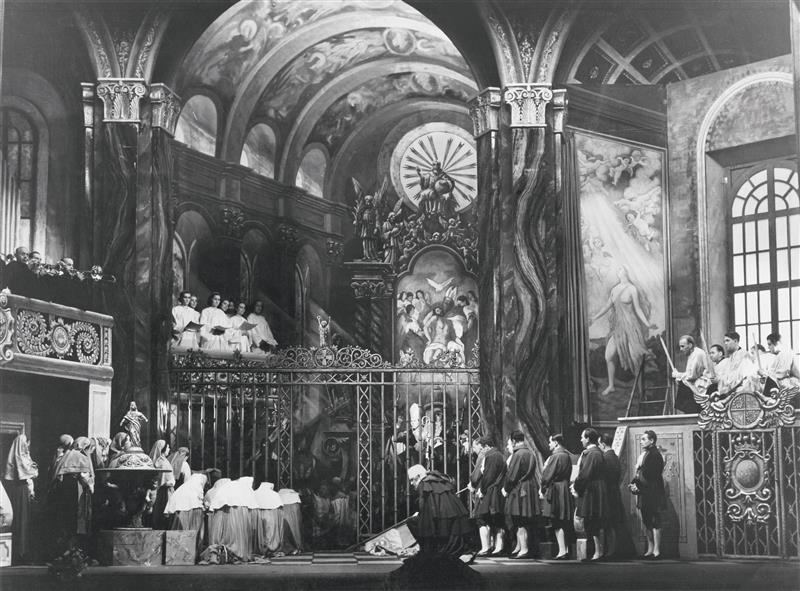 Tosca - 19.09.1942, sborová scéna; uprostřed Miloš Linka (Baron Scarpia)