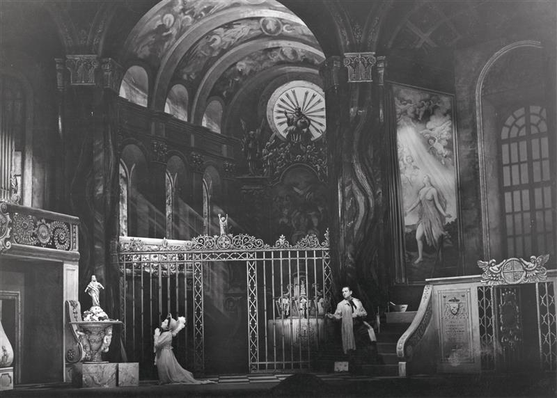 Tosca - 19.09.1942, celková scéna; L. Červinková (Floria Tosca), J. Blažíček (Mario Cavaradossi)