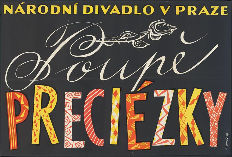 Preciézky - 26.03.1959, plakát k inscenaci (výtvarník Květoslav Bubeník)