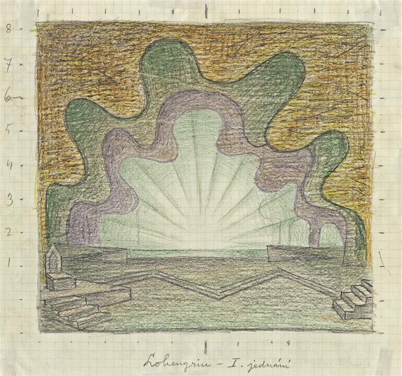 Lohengrin - 30.03.1940, Jan Zrzavý - návrh scény, 1. jednání (nerealizováno)