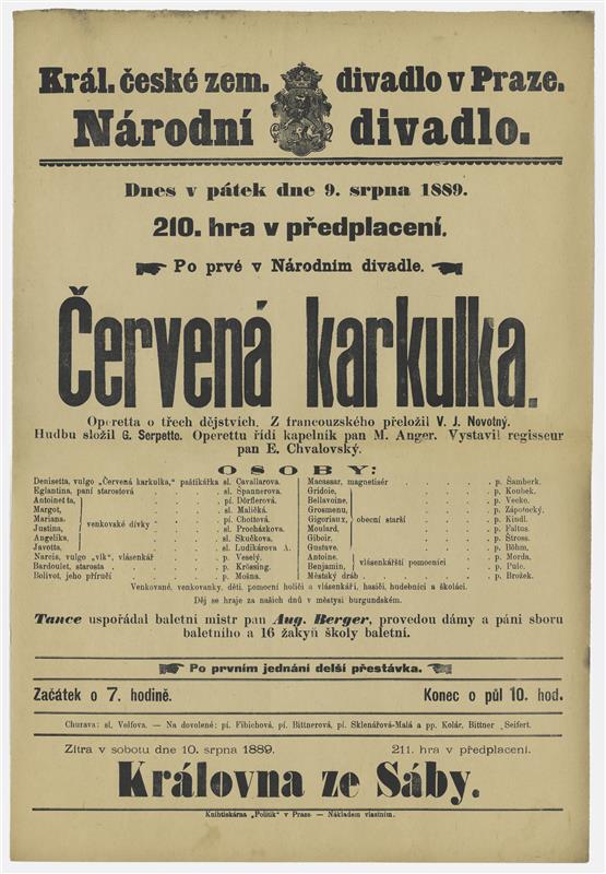 Červená Karkulka - 09.08.1889, divadelní cedule z premiéry