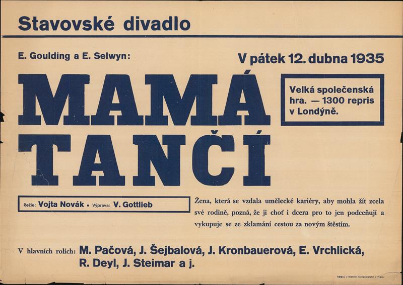 Mamá tančí - 12.04.1935, plakát k inscenaci (propagační, typografický)