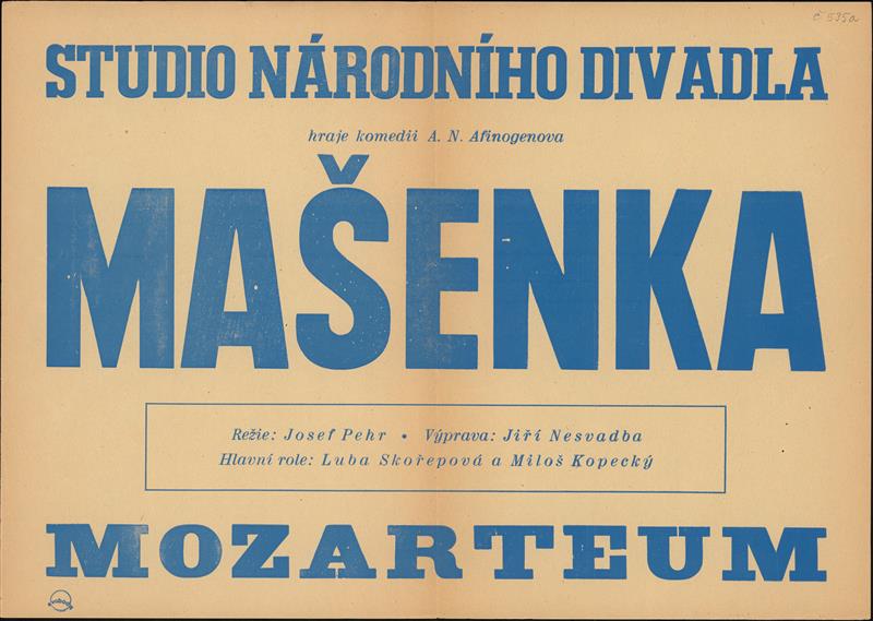 Mášenka - 25.10.1947, plakát k inscenaci (propagační, typografický)