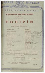 Podivín - 25.01.1957, divadelní cedule z premiéry