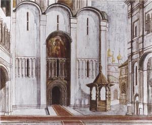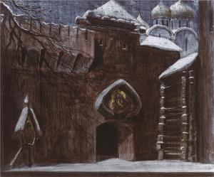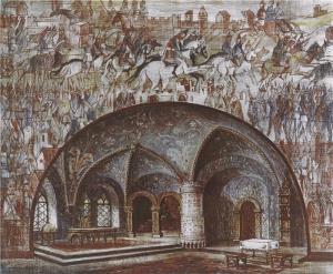 Boris Godunov - 12.02.1954, Josef Svoboda - návrh scény (barevná reprodukce)