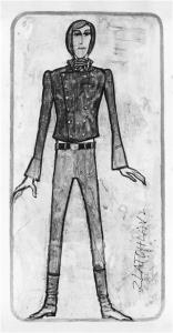 Tvrdohlavá žena... - 17.10.1974, Otakar Schindler - návrh kostýmu (Zlatohlav) (čb reprodukce)