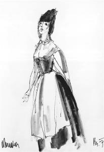 - sada čb fotografií (celky scény, detaily, reprodukce návrhů kostýmů)