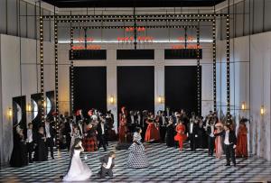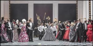 Maškarní ples - 05.10.2017, celková scéna, Y. Kinjo (Oscar), M. Lehotský (Gustav III.), Sbor ND