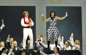 Maškarní ples - 05.10.2017, Peter Berger (Gustav III.), Yukiko Kinjo (Oscar), členové Sboru ND