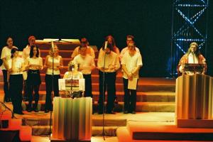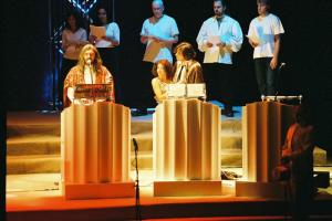 Božská komedie 03.02.2002 Tomáš Trapl (Ježíš), Dasha (Mariana), Daniel Hůlka (Apollón)