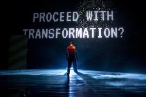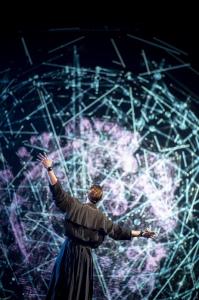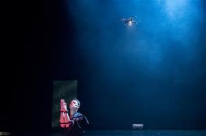 Na scénu vstupují v tvůrčí symbióze živí umělci a nejmodernější technologie. Experimentujeme s rozšířenou realitou a využíváme real time motion capture. Představitel Robota Radim Vizváry s pomocí senzorů umístěných na svém těle proměňuje v reálném čase to, co se děje na plátně. Svým pohybem tedy manipuluje s obrazem. Interaktivní je i zapojení živé hudby Michala Pavlíčka, kdy snímání zvukové linky spouští nebo ovlivňuje dění na plátně. Nastává tak vizualizace lidské myšlenky vyjádřené pohybem či zvukem.