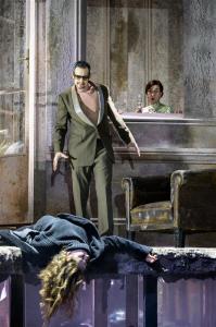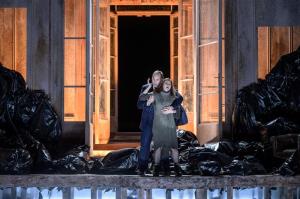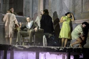 Médea - 23.01.2025,Marcell Bakonyi (Creonte), zády Světlana Aksenova (Médea), Sbor Národního divadla