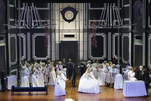 Andrea Chénier - 05.05.2016, celek z 1. jednání, v popředí Anda-Louise Bogza, Kateřina Jalovcová