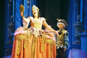 Orlando furioso 18.10.2001 celková scéna, Eva Forejtová (Alcina), Roman Janál (Ruggiero)