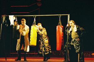 Béatrice et Bénédict 11.12.2003 I. Hrachovec (Don Pedro), J. Svoboda (Don Juan), M. Bárta (Claudio)