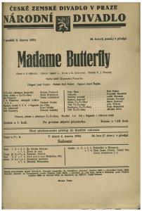 Madame Butterfly - 05.10.1921, divadelní cedule z premiéry