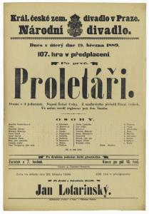 Proletáři - 19.03.1889, divadelní cedule z premiéry