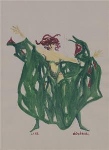 Strakonický dudák - 17.11.1958, Ludmila Vojířová - návrh kostýmu (Divoženky v lese zezadu)