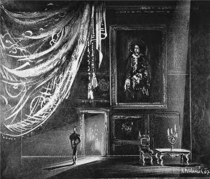 Maškarní ples - 12.01.1968, Květoslav Bubeník - návrh scény (čb reprodukce)