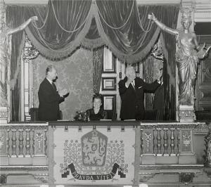 16.05.1968 - slavnostní premiéra Strakonického dudáka (A. Dubček a L. Svoboda s chotí)
