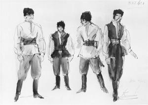Taras Bulba - 18.05.1978 Jindřiška Hirschová - návrh kostýmu (kozáci); čb reprodukce