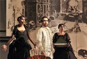 Kouzelná flétna 23.03.2008 Tomáš Černý (Tamino), Jan Ondráček (Monostatos), zády Alena Miro (Pamina)