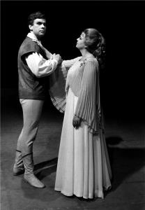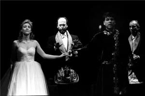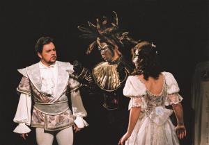 Kouzelná flétna 20.10.1995 Lívia Ághová (Pamina),Marian Albert (Tamino),v pozadí R. Janál (Papageno)