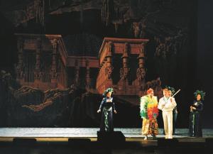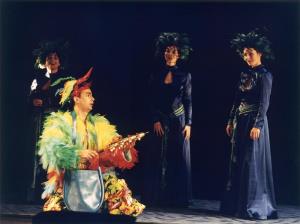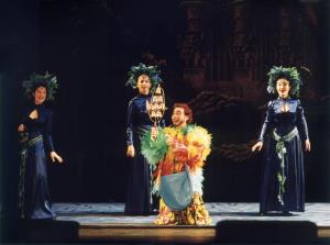 Kouzelná flétna 19.09.2002 A. Jenis(Papageno), A. Kalivodová,S. Čmugrová,H. Jonášová (3.,2.,1. dáma)