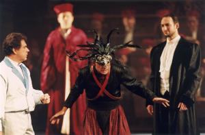 Kouzelná flétna 19.09.2002 L. Havlák (1. kněz), L. Hynek-Krämer (Sarastro), P. Klečka (2. kněz)