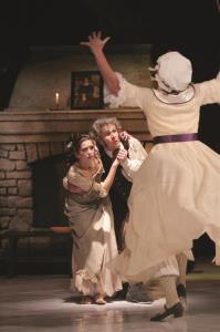 Popelka 16.12.2004 Sylva Nečasová (Popelka), Petr Kolář (Otec Popelky), zády Milan Boček (Macecha)